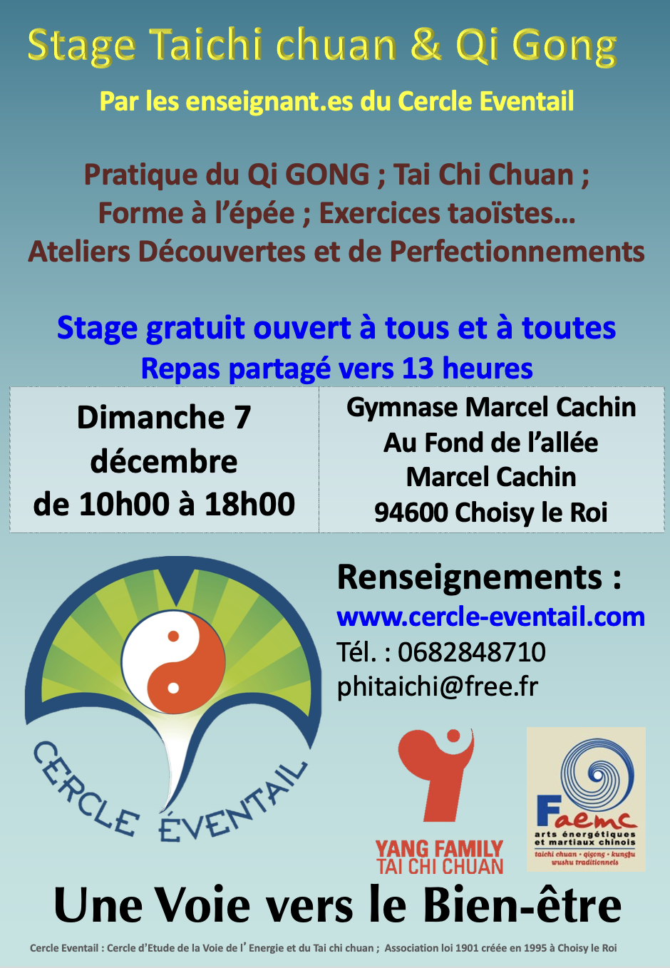 Bienvenue ! 28 novembre 2025Infos Tai ChiPhilippe Denis Bonjour et Bienvenue ! COURS DE TAI CHI CHUAN ET DE QI GONG Ne pas hésiter à passer pour regarder ou mieux découvrir en pratiquant ! Continuer la lecture de Bienvenue ! →